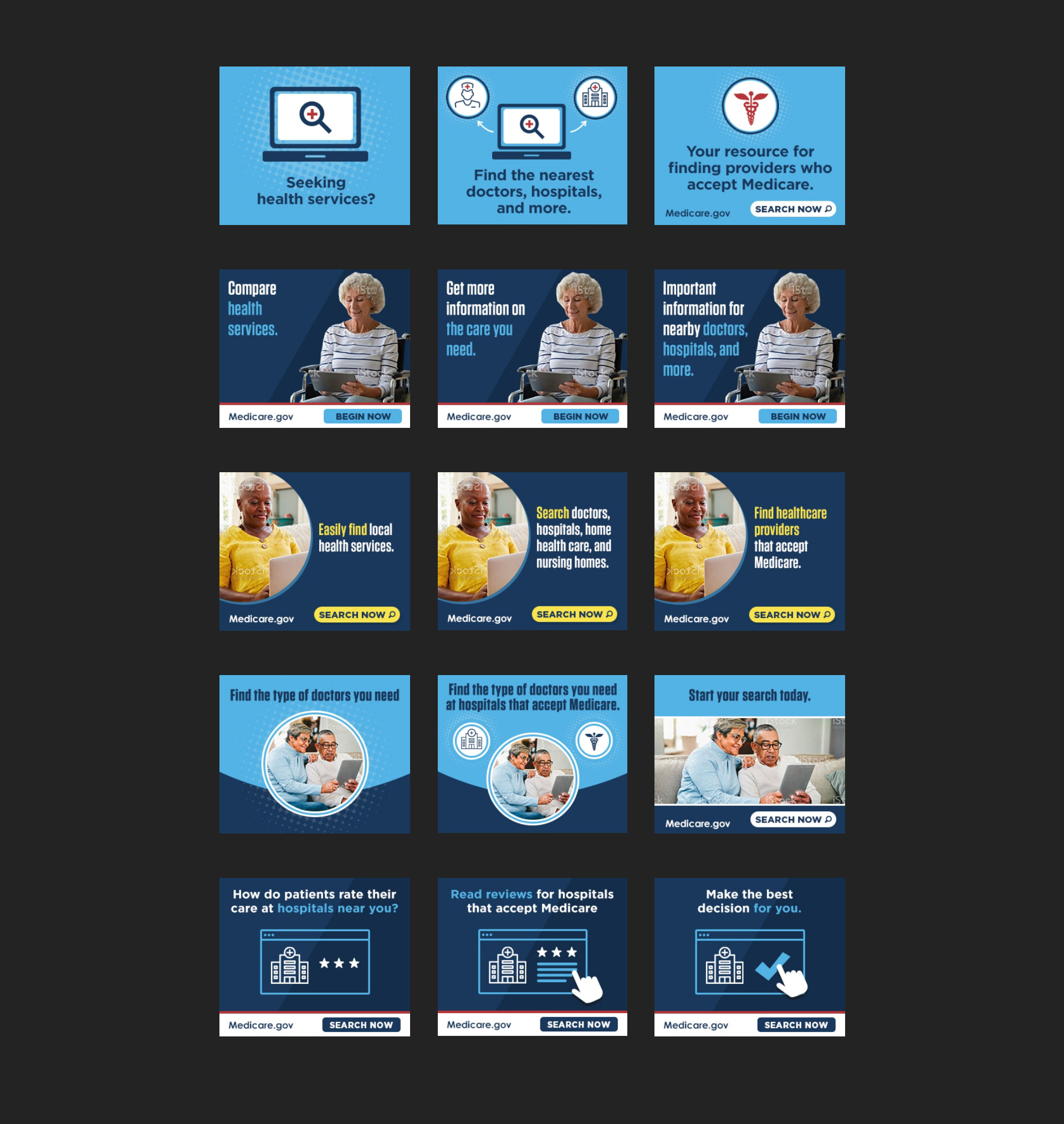 Designed a series of banner ads to learn more about healthcare services provided by Medicare.